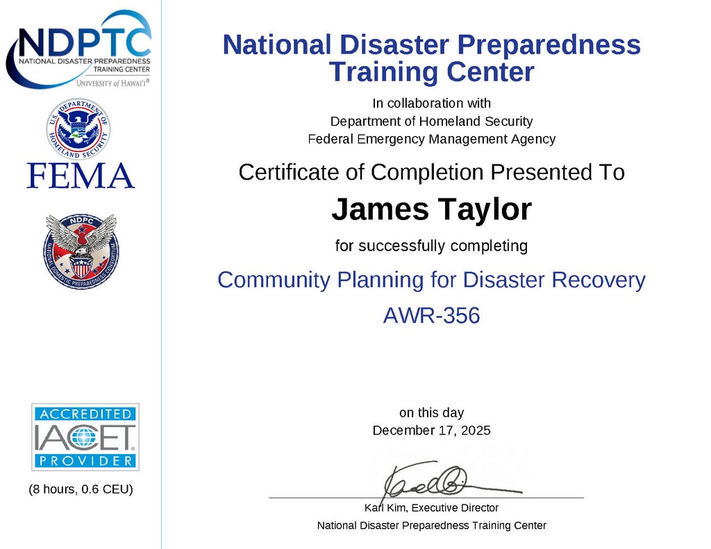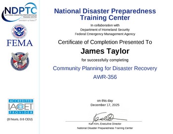 - 2025 FEMA National Disaster Preparedness Training - Community Planning for Disaster Recovery